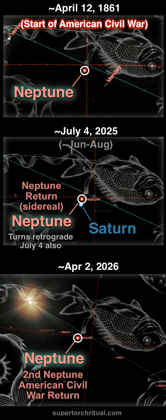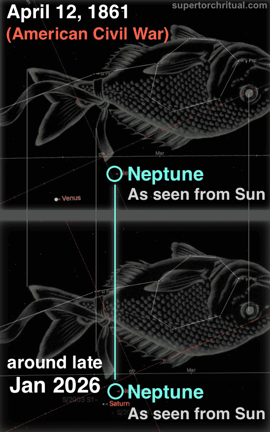 Plus, important to note that Neptune is actually returning to its American Civil War starting point position around late January 2026 from a heliocentric perspective (i.e. Neptune completing one orbit as seen from the Sun)…