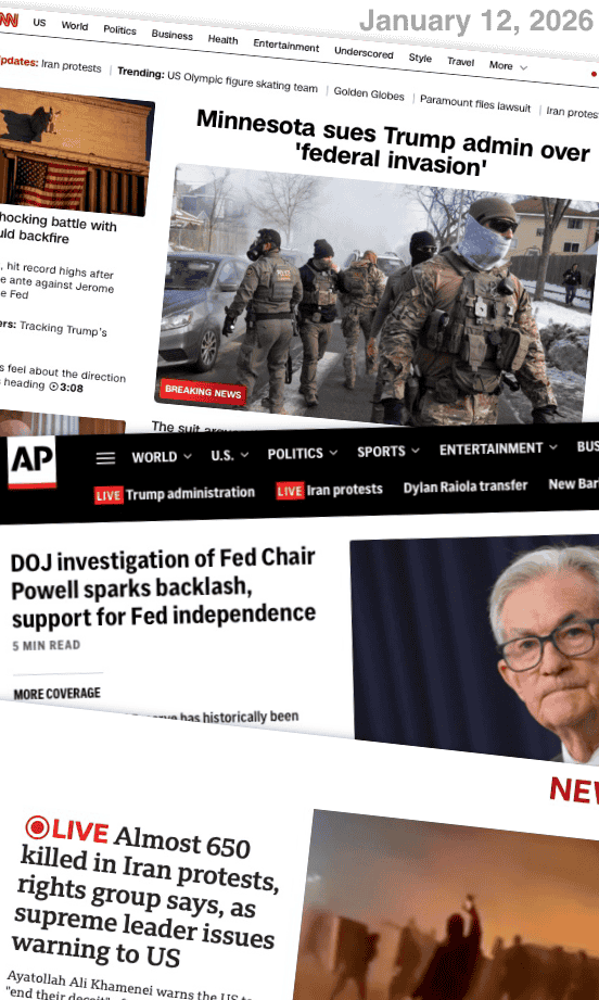 Minneapolis, Venezuela, Iran, Greenland, Federal Reserve, etc. etc. Chaos galore, as anticipated…